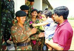 11) Welfare of Soldiers : In order to create nearness between the civilians and the soldiers guarding the borders and their families, we likeminded formed "SAINIK MITRA PARIWAR". We undertook, journey by motorcycle to various border posts to be with the soldiers protecting the borders. We celebrated various festivals with the "JAWANS" in their camps and even in Military Hospital. We continuously endevoure to reduce the grief of the bereaved families of soldiers, by being with them in the hour of their grief.